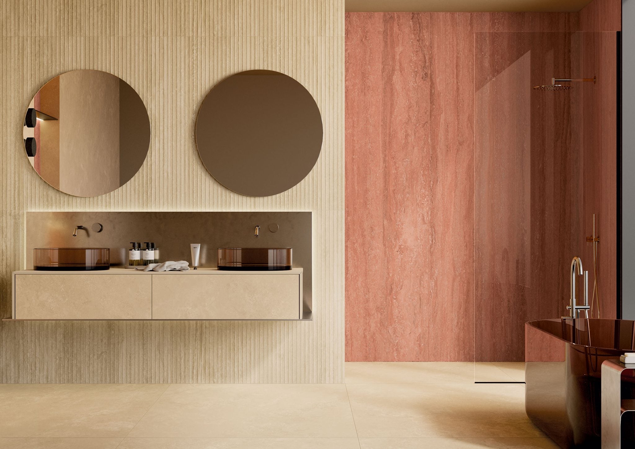 Explore8 colors available in matte and shiny finishes, which can be combined to define the character of spaces, harmonizing with materials such as marble, concrete, and wood,