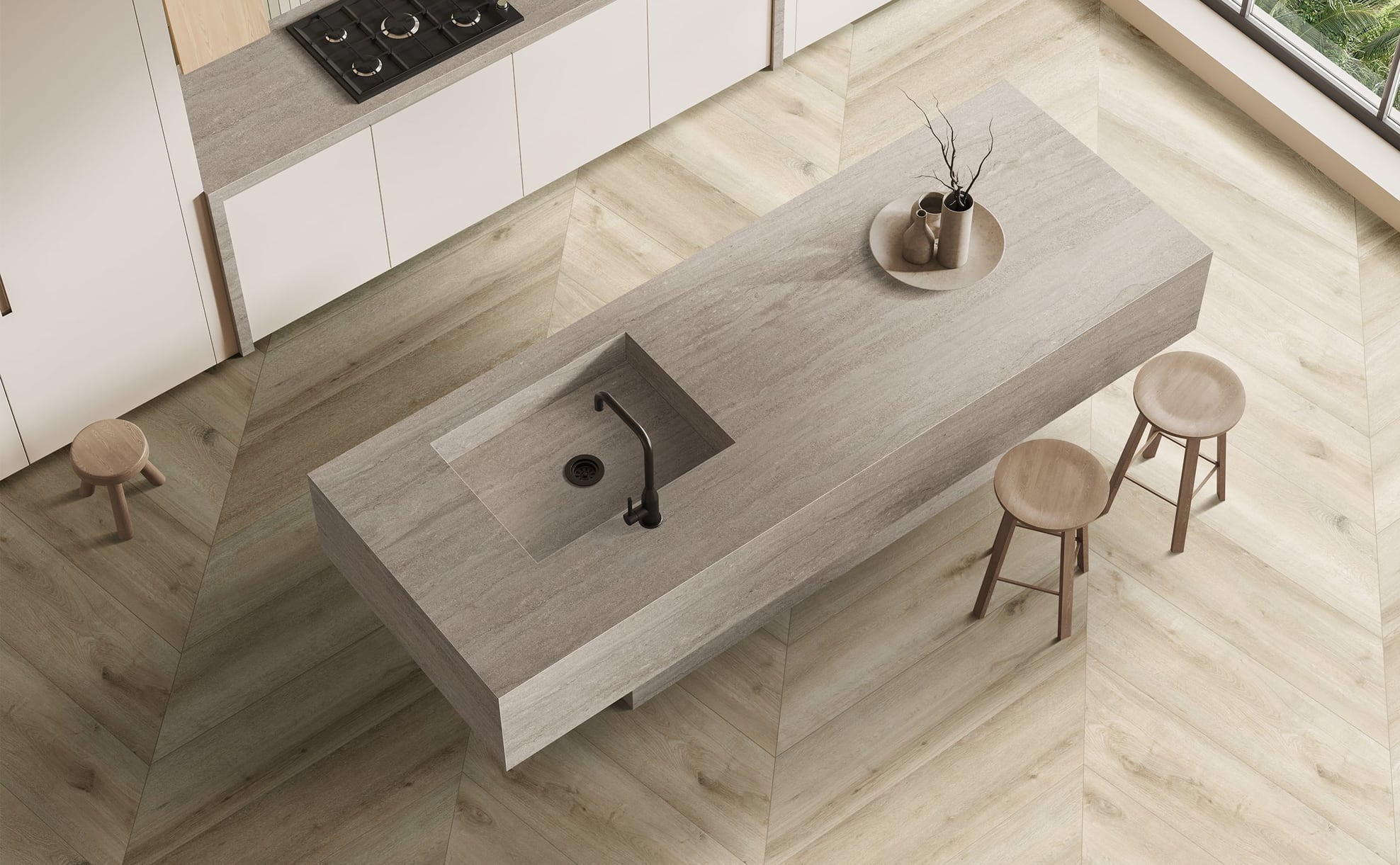 Developed using state-of-the-art Digital Texture, each tile boasts a remarkably realistic texture that mirrors the natural allure of wood, inviting the touch and admiration of all who encounter it. Malibu Plank is available in three timeless colors —Saddle, evoking the rich hues of weathered oak; Honey, capturing the warmth of sun-drenched sands; and Natural, reminiscent of the raw, untouched beauty of coastal landscapes.