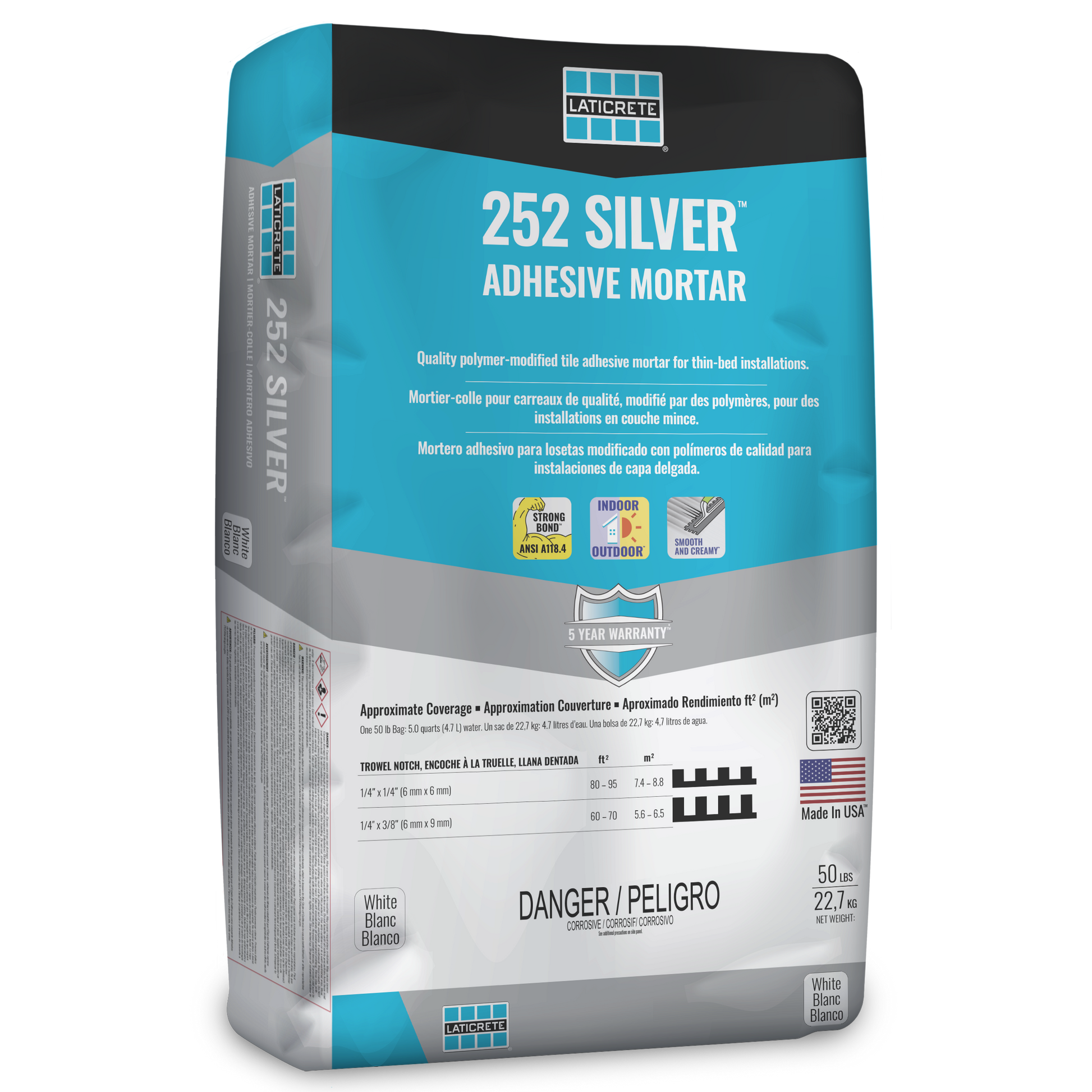 Laticrete - 252 Silver - Adhesive Mortar (50lb Bag) is a high-performance, versatile, and easy-to-use thin-set mortar that is perfect for bonding ceramic, porcelain, glass tile, and natural stone to a wide variety of surfaces. Designed for both residential and commercial applications, this premium mortar provides exceptional bond strength and is ideal for use in dry and wet conditions. The 25lb bag is convenient for both small and large projects, delivering the reliability you need for long-lasting installations.