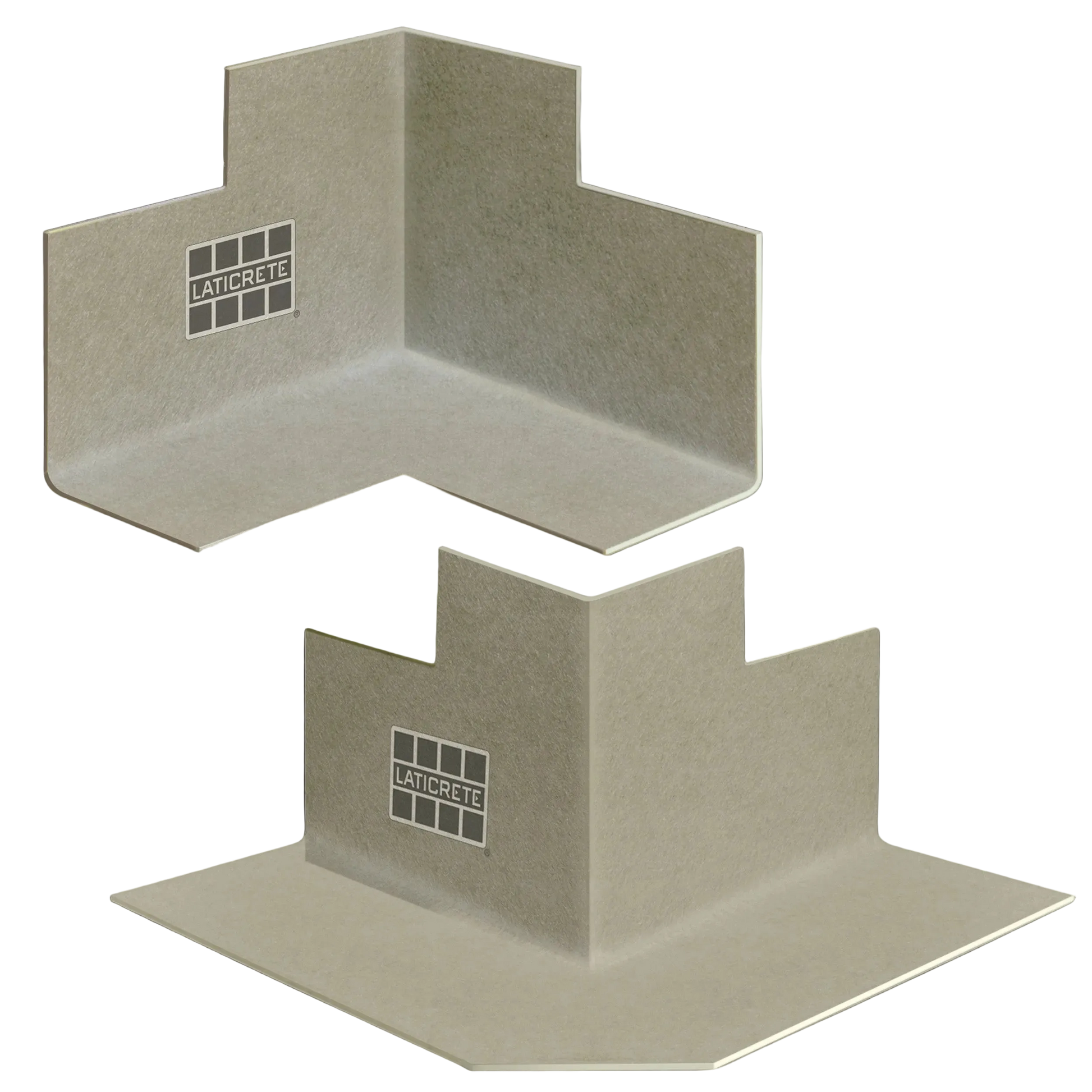 Laticrete - Hydro Ban Waterproofing Membrane Corners are pre-formed waterproofing accessories designed to simplify corner detailing in showers and other wet areas. Their flexible, fleece-backed construction allows them to adapt easily to inside and outside angles, helping create a secure, watertight seal across a variety of substrates. These corners are intended to be used as part of the complete HYDRO BAN® waterproofing system, alongside sheet membrane, sealing tape, collars, and related components. Installed with adhesive mortar, they provide dependable waterproof and vapor protection for demanding applications such as steam showers, bathrooms, and wet rooms.