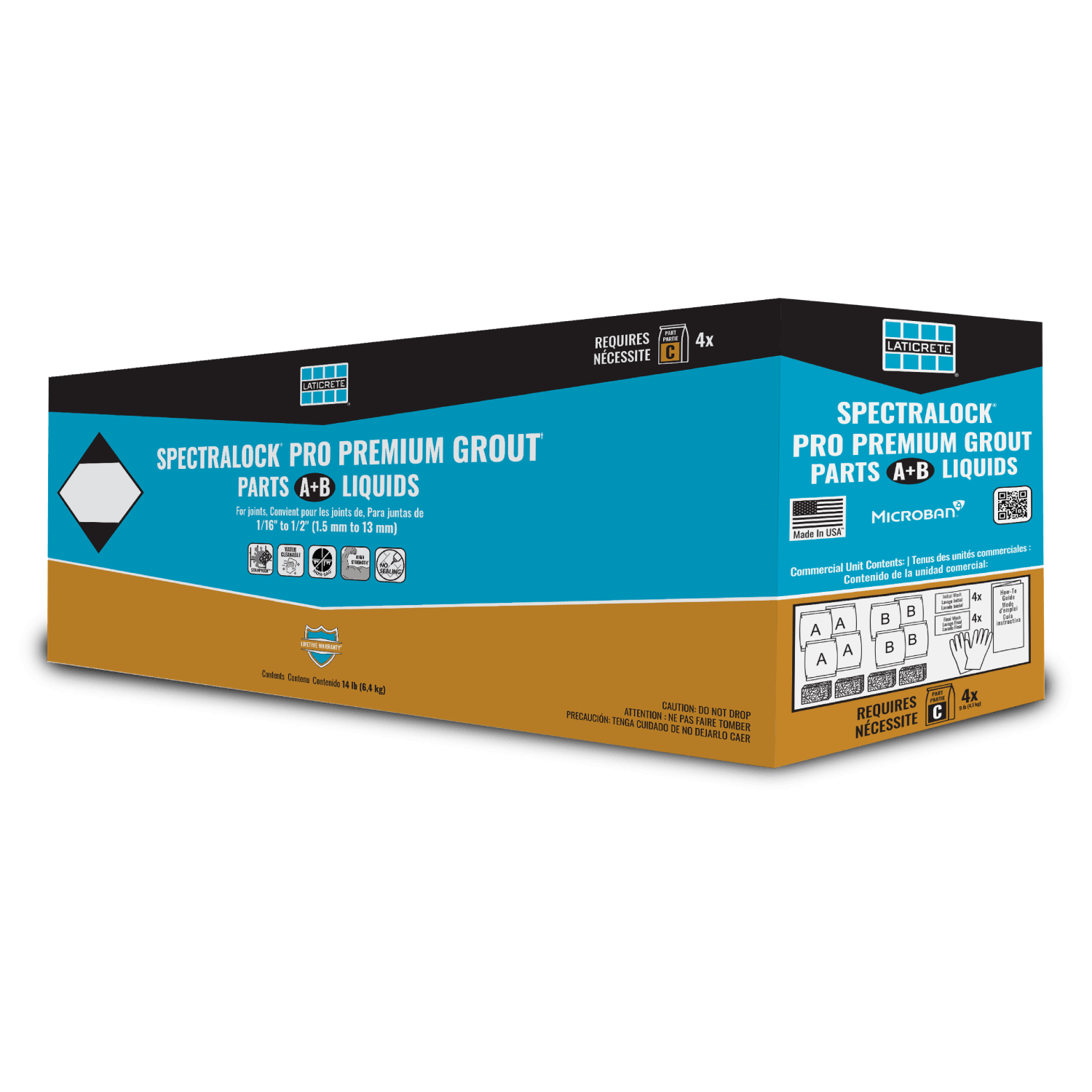 Commercial Unit: Equals four SPECTRALOCK PRO Premium Grout Full Unit Liquid components, gloves, sponge and cleaning packets packed in one carton.