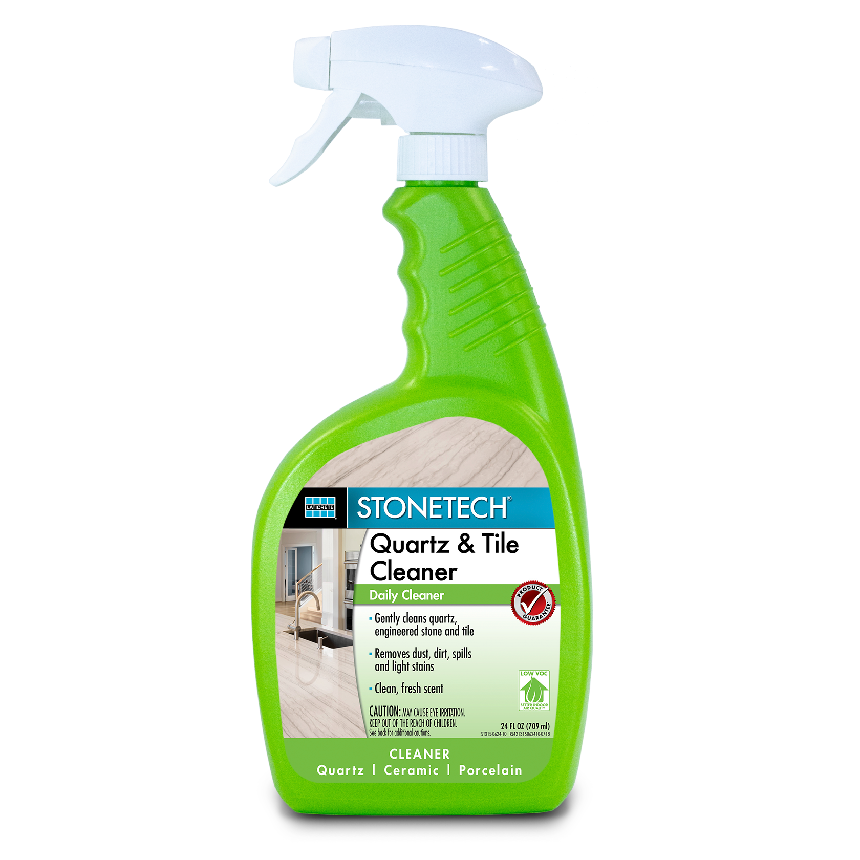 STONETECH Quartz & Tile Cleaner is the ready-to-use, daily cleaner that removes dust, dirt, spills and even light stains from quartz, engineered stone and tile surfaces. This gentle, non-abrasive cleaner is a safe, low VOC solution to maintaining a clean quartz surface without the need to rinse down with water. It leaves a clean fresh scent and is great for use for use on kitchen and bathroom countertops and backsplashes.