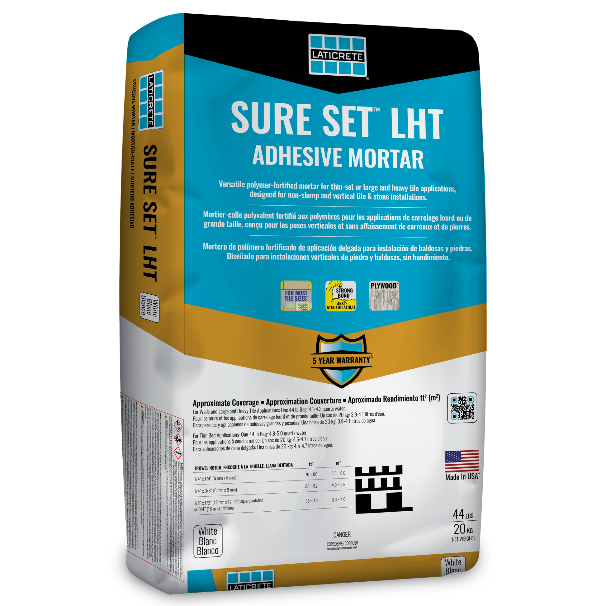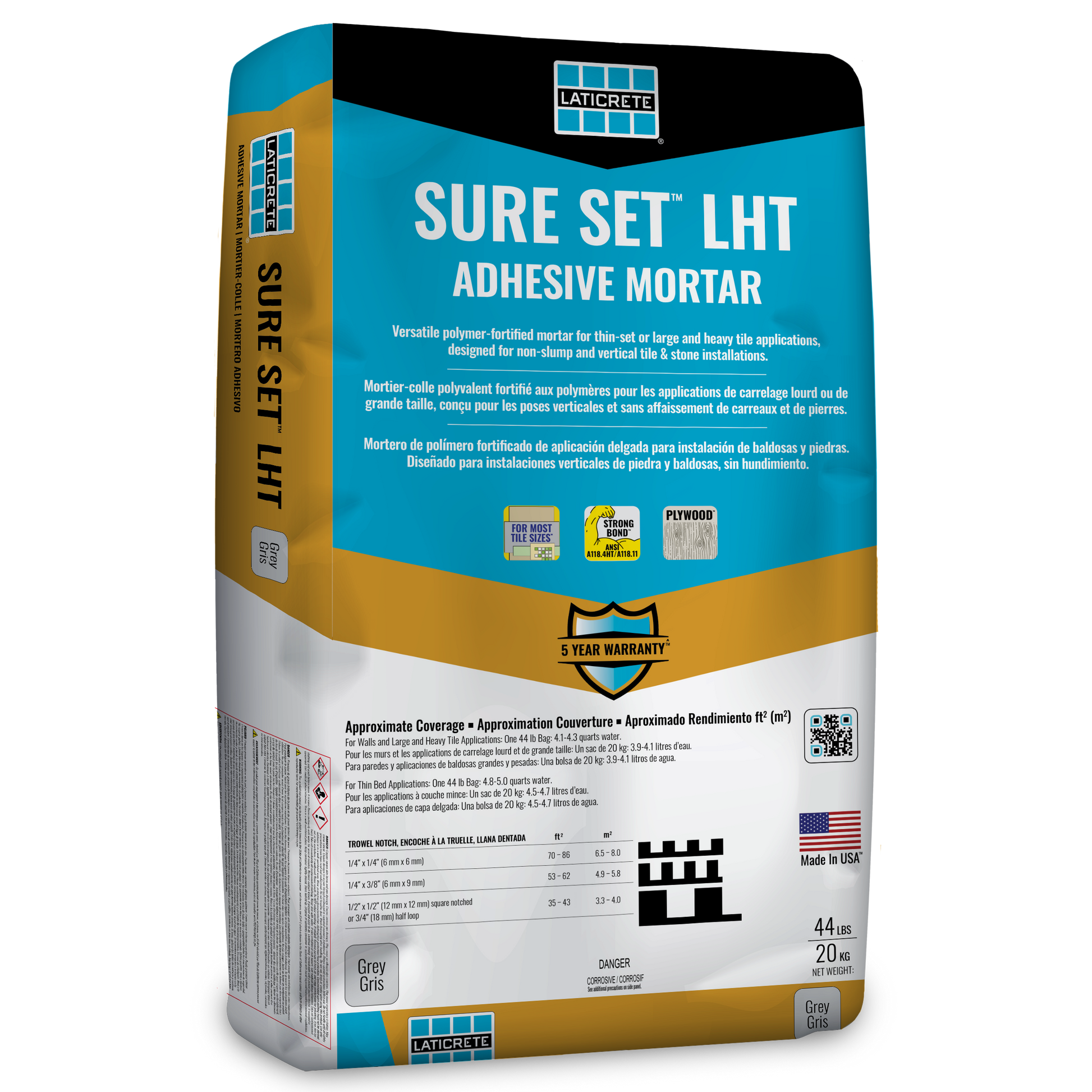 Achieve superior tile installations with Laticrete Sure Set LHT - Polymer Fortified Adhesive Mortar (44lbs), a premium polymer-modified, large and heavy tile mortar (formerly known as medium bed mortar) designed for maximum efficiency and reliability. Engineered with Rapid Coverage Technology™, this lightweight formula offers easy troweling and extended open time, making it the ideal choice for both professional tile contractors and DIY installers.
