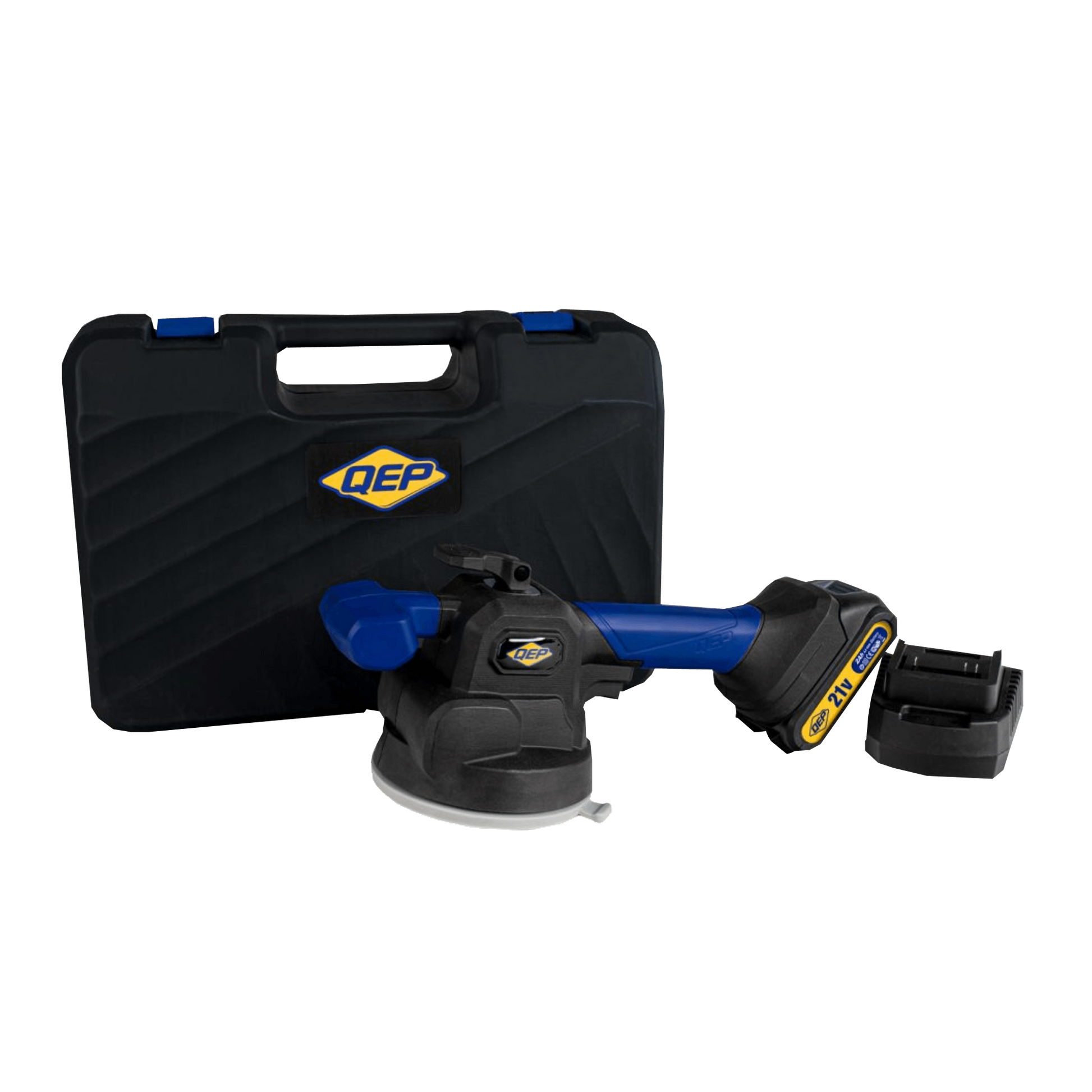 Achieve flawless tile installation with the QEP GPTP Vibrating Suction Cup, designed for precision and efficiency when working with large-format floor and wall tiles. This innovative tool eliminates trapped air bubbles under tiles using variable trigger control speed vibration, ensuring complete adhesion and a smooth, professional finish. Powered by a rechargeable lithium battery, the Vibrating Suction Cup offers cordless convenience and consistent performance on any jobsite. Perfect for gauged porcelain tile panels, it helps installers save time and improve accuracy on every project.