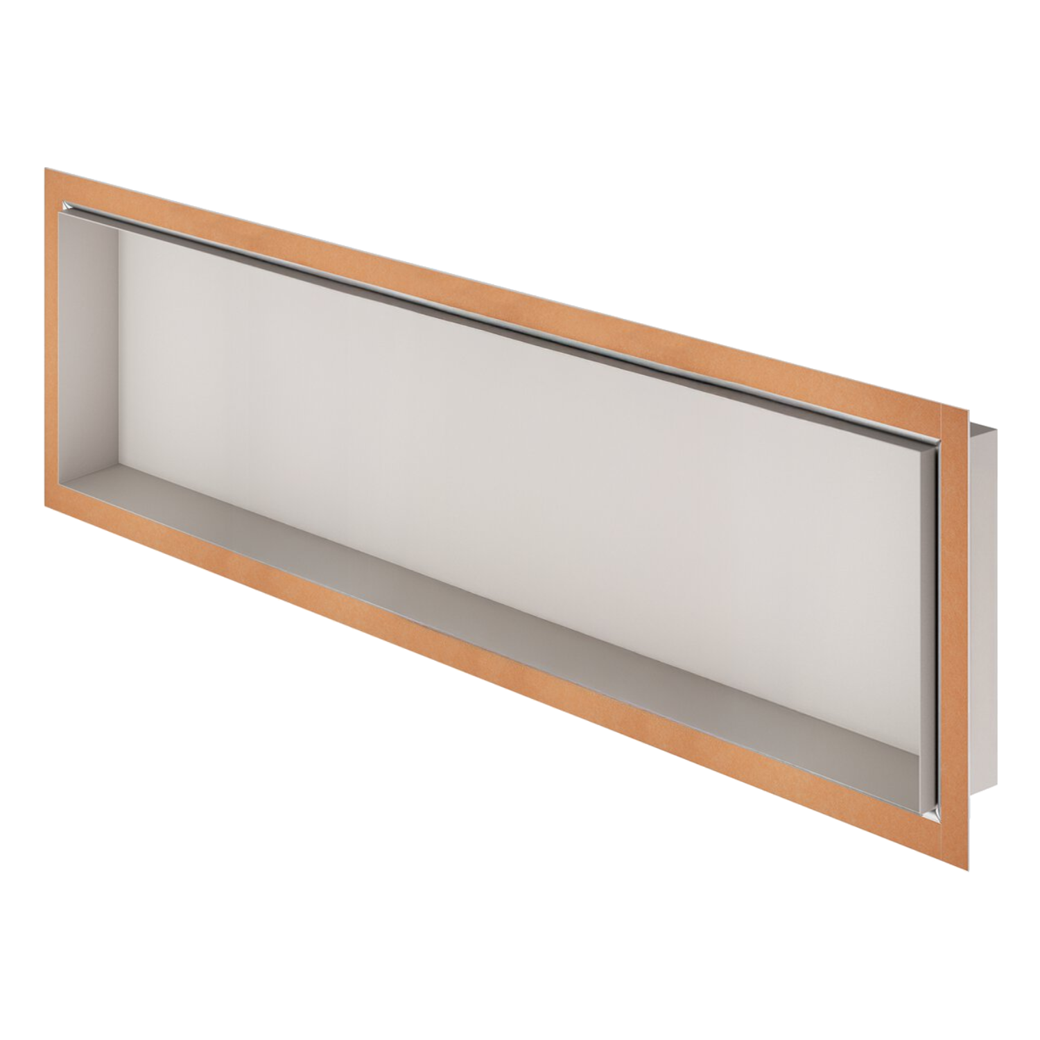The Schluter Design Niche - 12x48" Aluminum Shower Niche w/ 5 Color Options is a prefabricated, powder-coated aluminum shower niche that delivers elegant, low-maintenance storage without the need for tile finishing. Designed for quick and hassle-free installation, this fully waterproof niche fits seamlessly into any tiled shower, bathroom, or wet area. With an adjustable frame for flush or reveal edge installation, the Schluter-DESIGN-NICHE is engineered to align with standard tile dimensions, allowing for continuous grout lines and a seamless finish. It’s the perfect solution for anyone seeking clean design, time savings, and reliable performance.