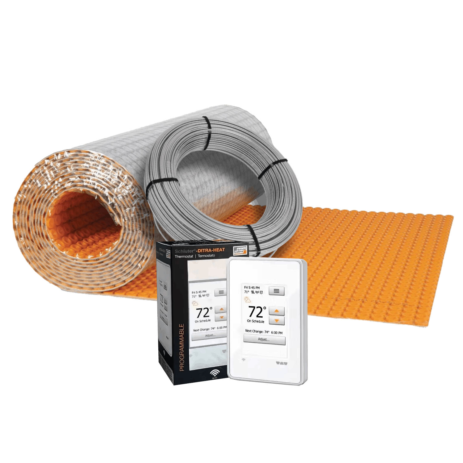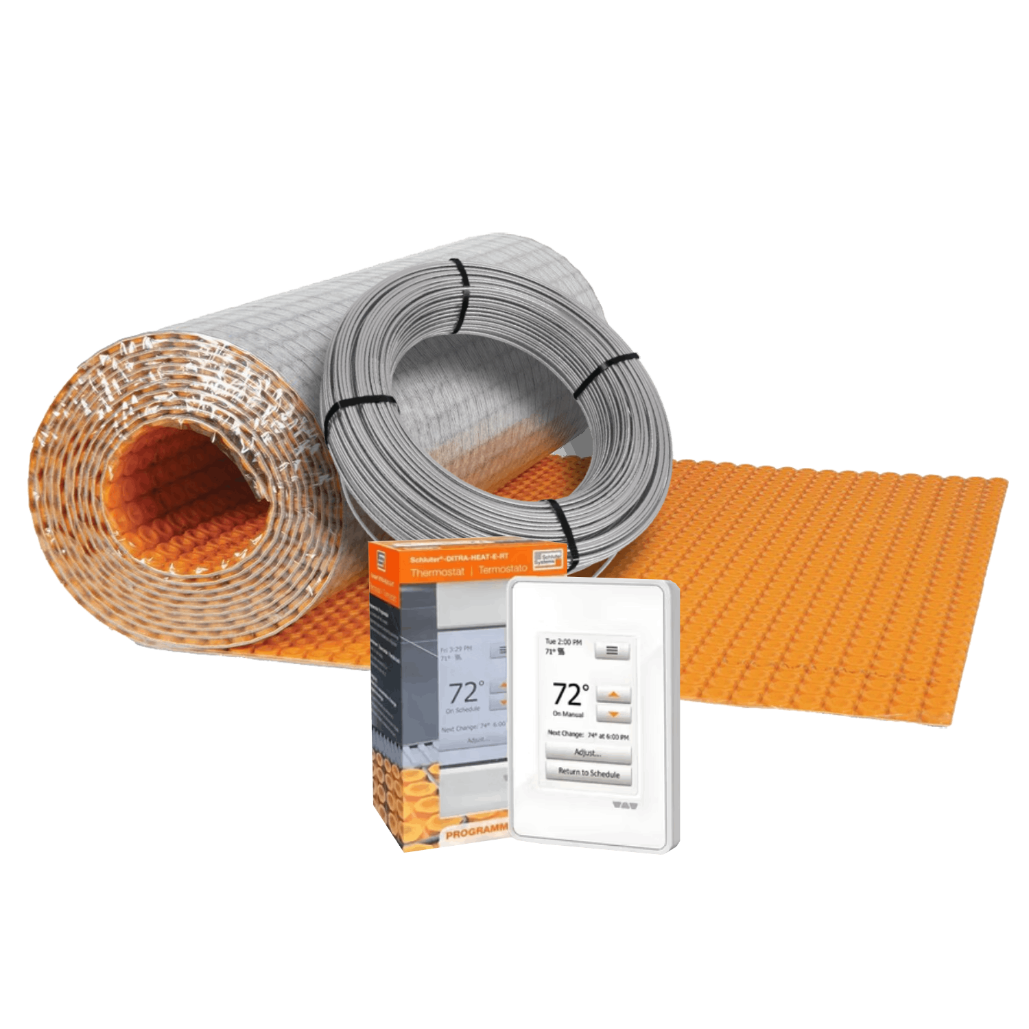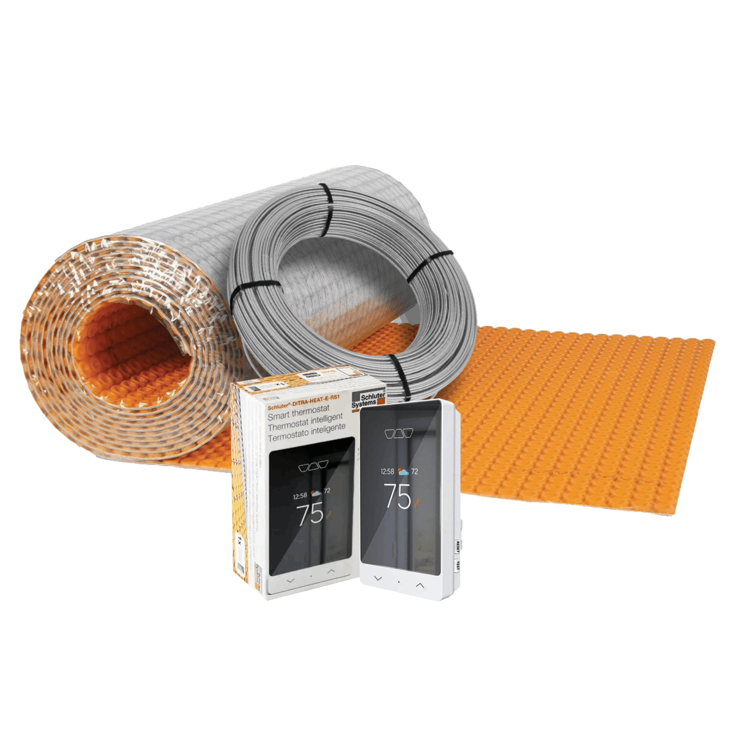 The Schluter-DITRA-HEAT Radiant Floor Heating Kit (120volt) is a heated floor system we put together from Schluter Systems' line of products and is designed to provide electric floor heating solutions for both residential and commercial applications. Schluter Systems is known for its high-quality products, and their radiant floor heating products are no exception. You can customize your own kit parts. Here is the breakdown of how much of each membrane type comes paired with each cable size option: