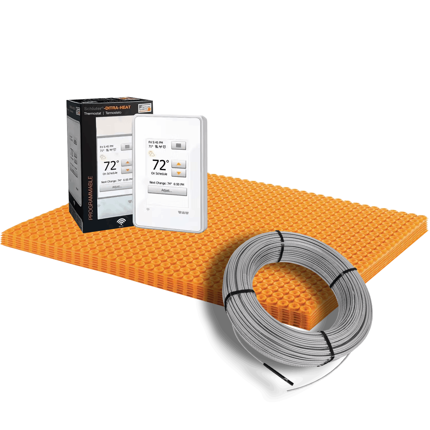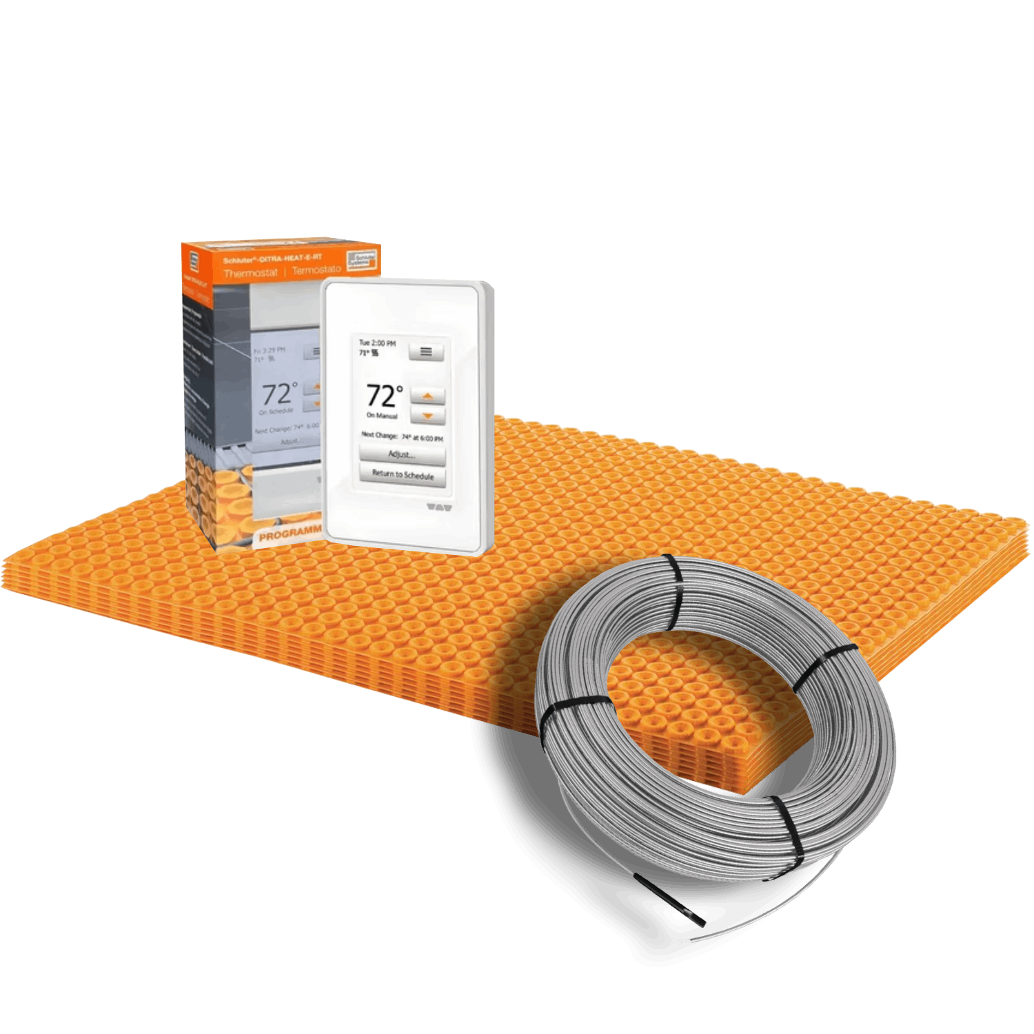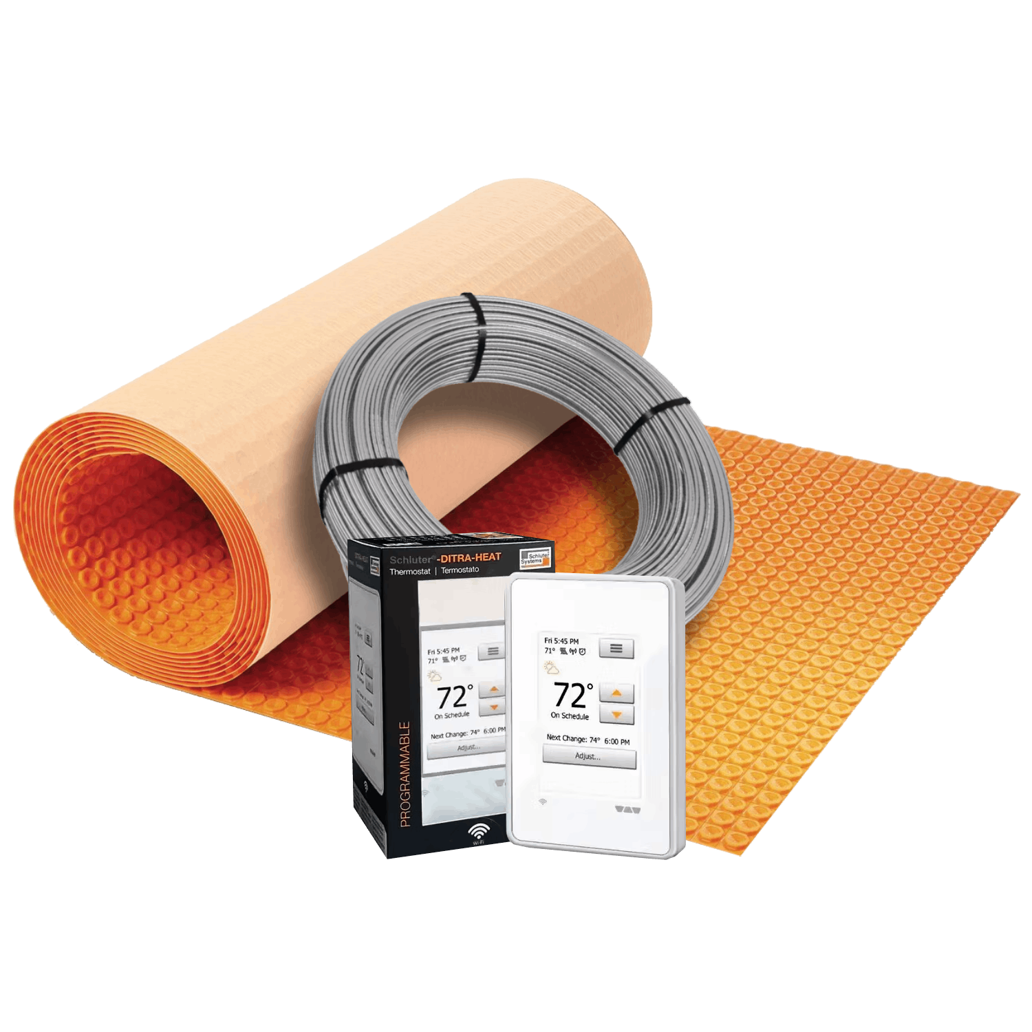 The Schluter-DITRA-HEAT Radiant Floor Heating Kit (120volt) is a heated floor system we put together from Schluter Systems' line of products and is designed to provide electric floor heating solutions for both residential and commercial applications. Schluter Systems is known for its high-quality products, and their radiant floor heating products are no exception. You can customize your own kit parts. Here is the breakdown of how much of each membrane type comes paired with each cable size option:
