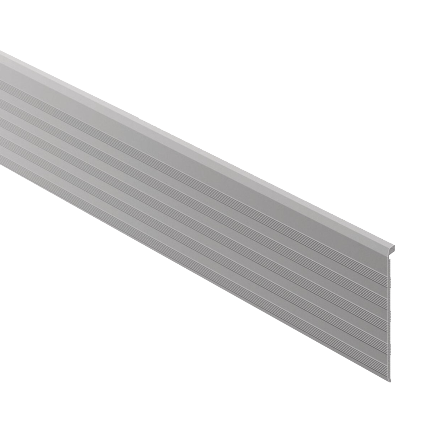The Schluter-TREP-TAP is an anodized aluminum cover profile that integrates with the TREP-S and TREP-B stair-nosing profiles to conceal the top of the riser.